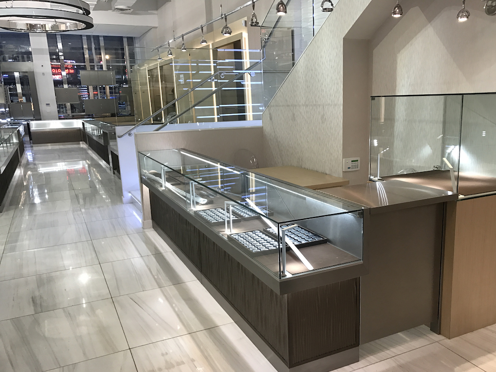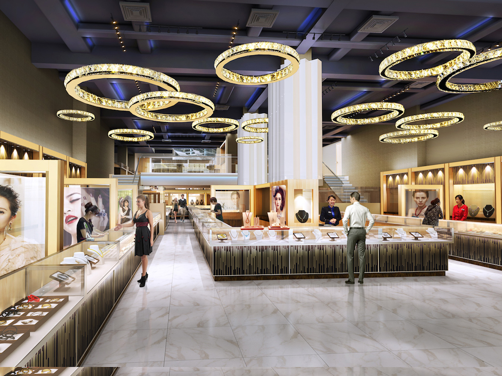 该建筑位于时代广场附近的钻石交易区,改造工程将现有珠宝和钻石交易零售空间进行全面改建,包括前厅,办公楼大厅,首层和夹层商业零售摊位。 改造工程创造了高天花板空间,照明采用了时尚的钻石戒指造型的照明灯。 定制的高档陈列柜组合,有效合理地利用了现有的商业面积