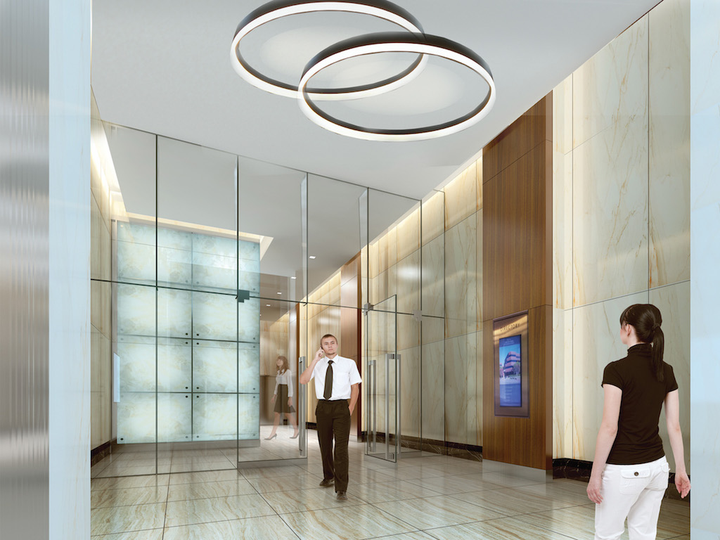 该建筑位于时代广场附近的钻石交易区,改造工程将现有珠宝和钻石交易零售空间进行全面改建,包括前厅,办公楼大厅,首层和夹层商业零售摊位。 改造工程创造了高天花板空间,照明采用了时尚的钻石戒指造型的照明灯。 定制的高档陈列柜组合,有效合理地利用了现有的商业面积