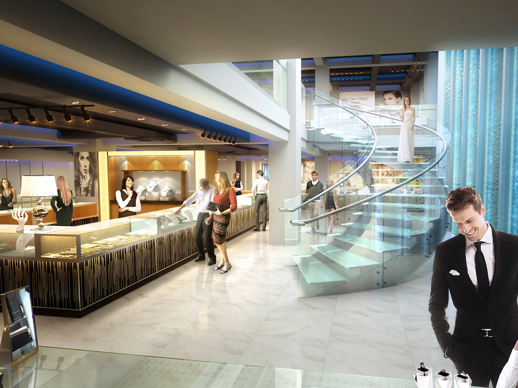 设计特点包括现代化的高档陈列柜和照明带镶嵌的蓝色玻璃门面。 改造工程将机械,电气和管道系统彻底更换,创造了环境可调节的豪华空间。